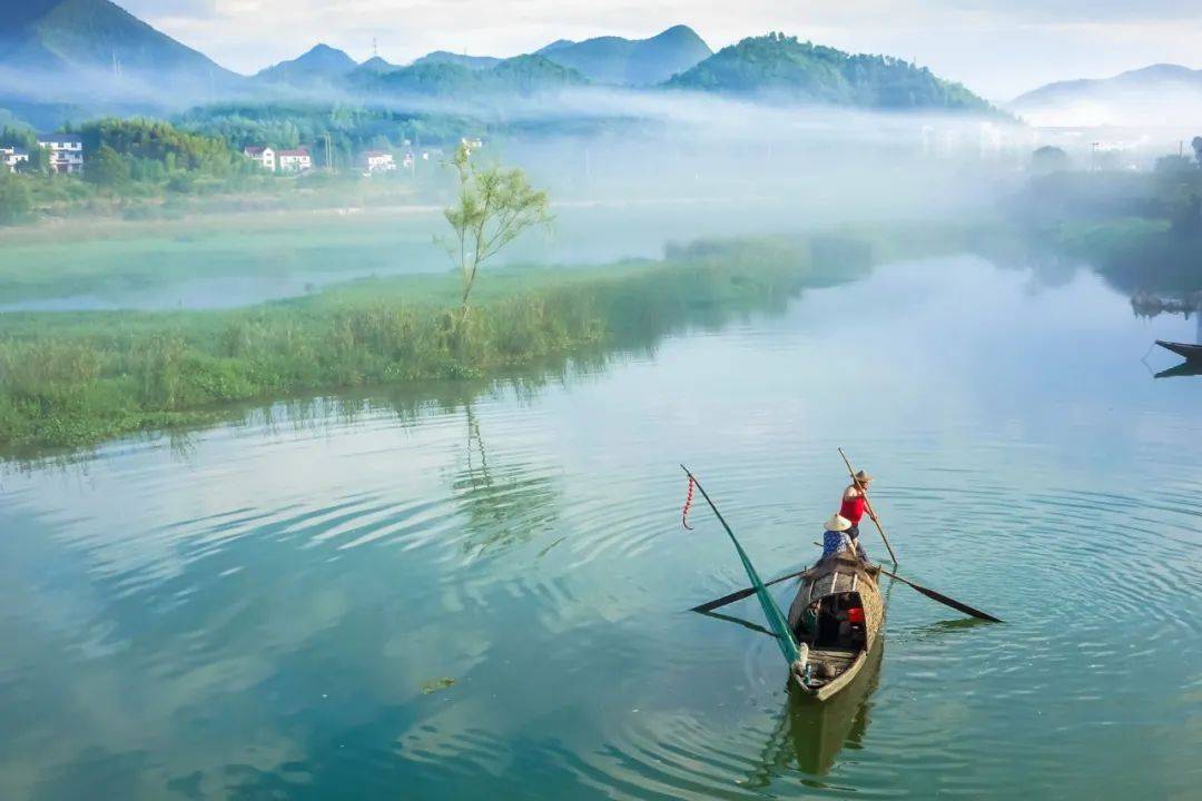 诗人一路行来,看着田野到处绿草青青,不时看到幽香的,特别明亮美丽。黄昏时,将船靠在古旧的祠堂里,静观外面风雨春潮的夜景。诗人有一种悠闲、从容、超然物外的心境和风度。