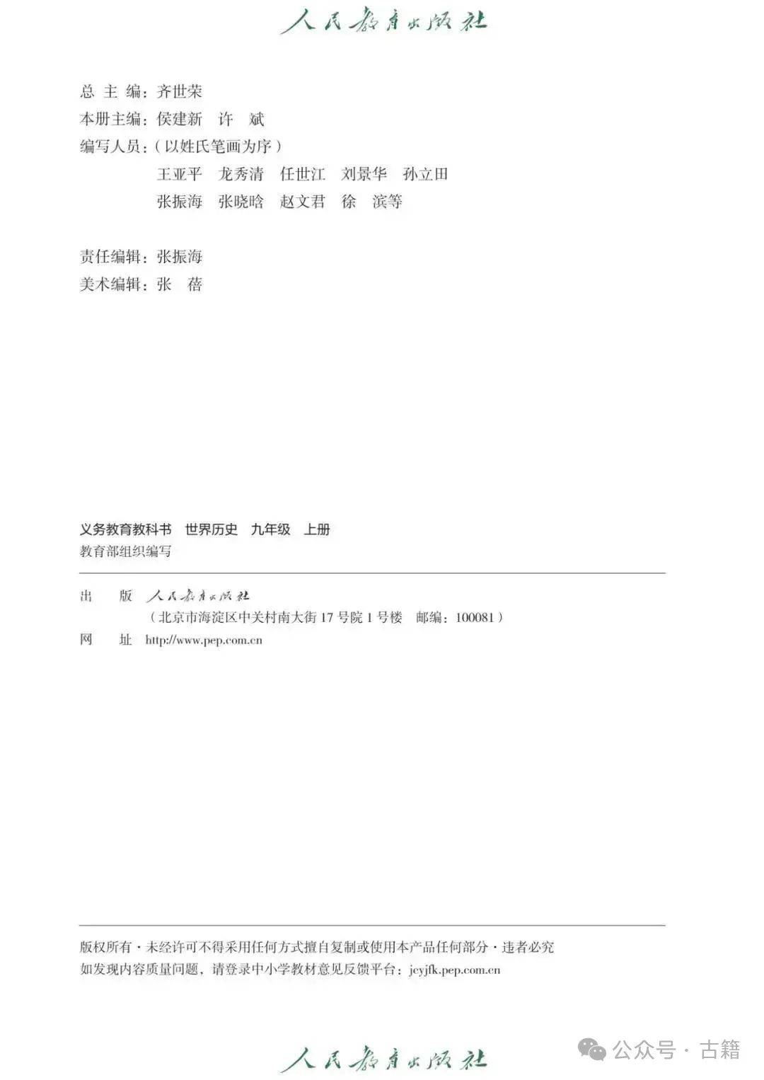 附:教育部审定九年级上册世界历史