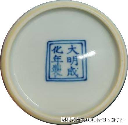 底款以青花楷书“大明成化年制”,字体工整有力,青花淡雅,与杯身整体风格相得益彰,进一步彰显了其宫廷御用的身份和尊贵品质。