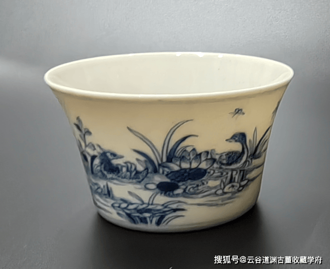 明代青花瓷的玲珑典范--成化青花莲池纹杯!