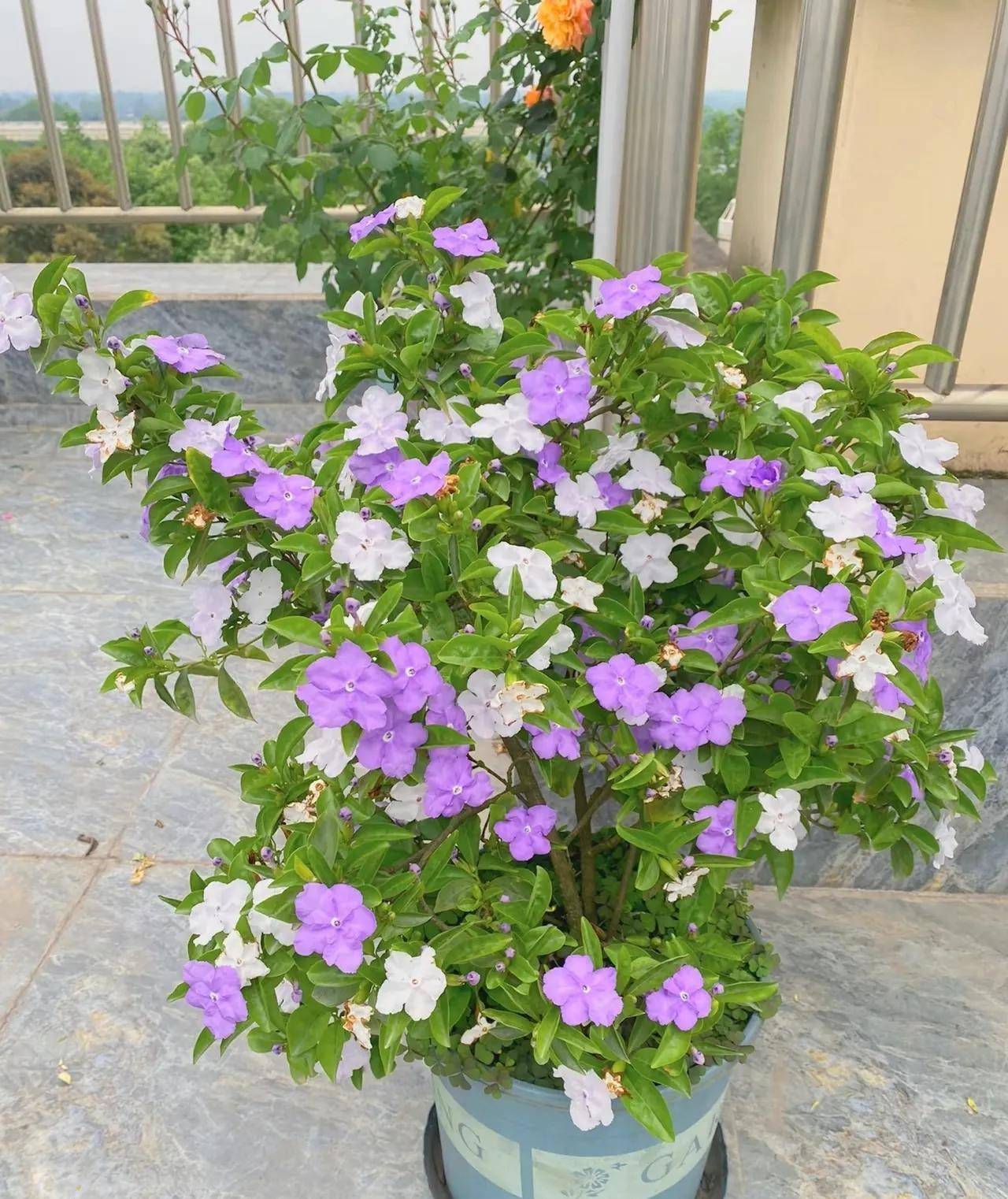 鸳鸯茉莉又叫双色茉莉,最初开花的时候,颜色是蓝紫色,后期会变成白色,所以在同一株茉莉花上,看到不同颜色的茉莉花。