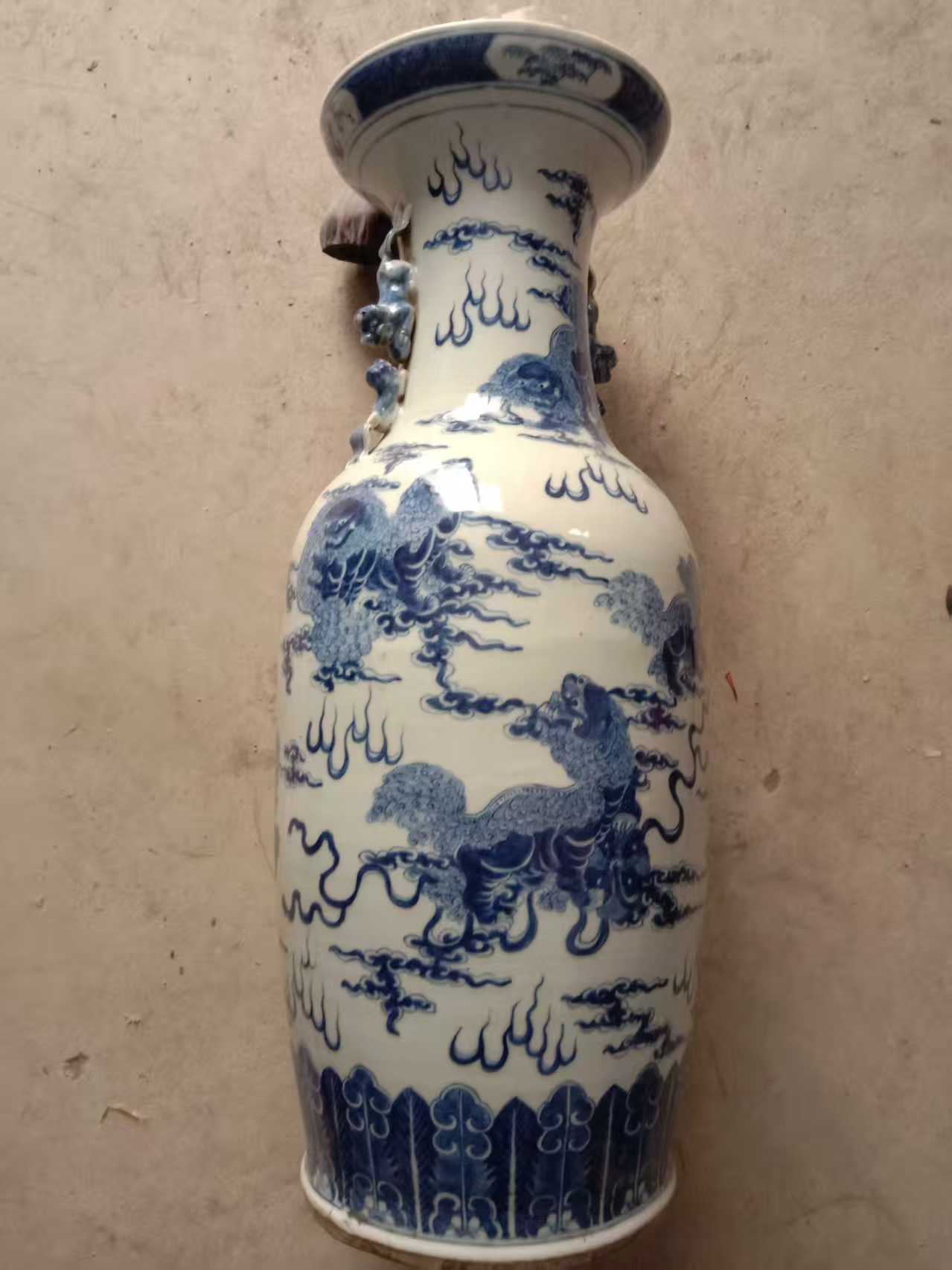 青花,作为中国瓷器装饰技法中的经典代表,有着悠久的历史。它起源于唐代,在元代逐渐成熟并达到高峰,明清时期更是得到了广泛的发展和创新。青花瑞兽双耳瓶采用的青花工艺,是先在成型的瓷胎上用钴料描绘纹饰,然后再罩上一层透明釉,经过高温烧制,钴料在高温下发生化学反应,呈现出鲜艳的蓝色 。