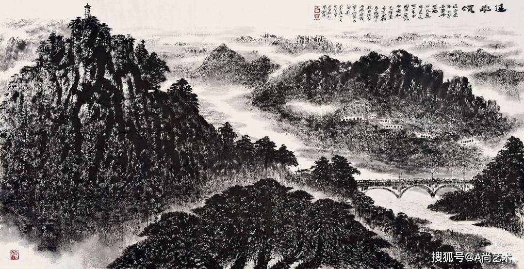 这幅作品以传统山水技法为骨,以历史叙事为魂,实现了艺术审美与文化价值的深度统一,是“笔墨载史,墨色传情”的典范之作。