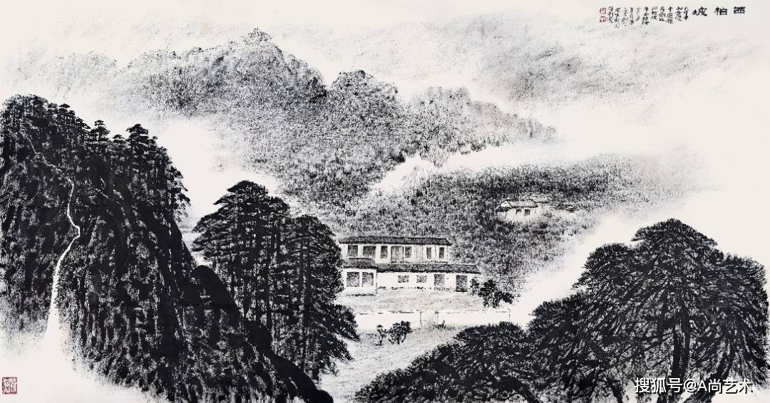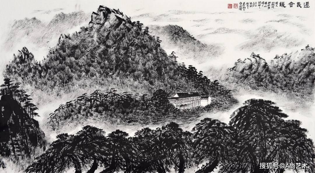 4. 画面中建筑的静谧、山林的苍劲,暗合遵义会议“转折关键”的历史意义——在困境中寻出路、于沉静中见力量。墨色的浓烈与空间的开阔,既是对历史节点的视觉化纪念,也传递出对革命精神的礼赞,让作品超越“山水画”的艺术范畴,成为承载历史记忆与精神传承的载体。
