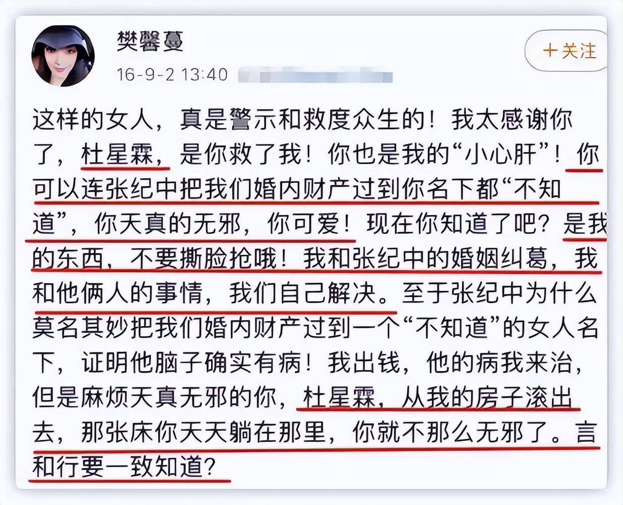 张纪中的前妻樊馨蔓公开指责杜星霖是“小三”,而杜星霖则反唇相讥,称对方是“疯女人”。