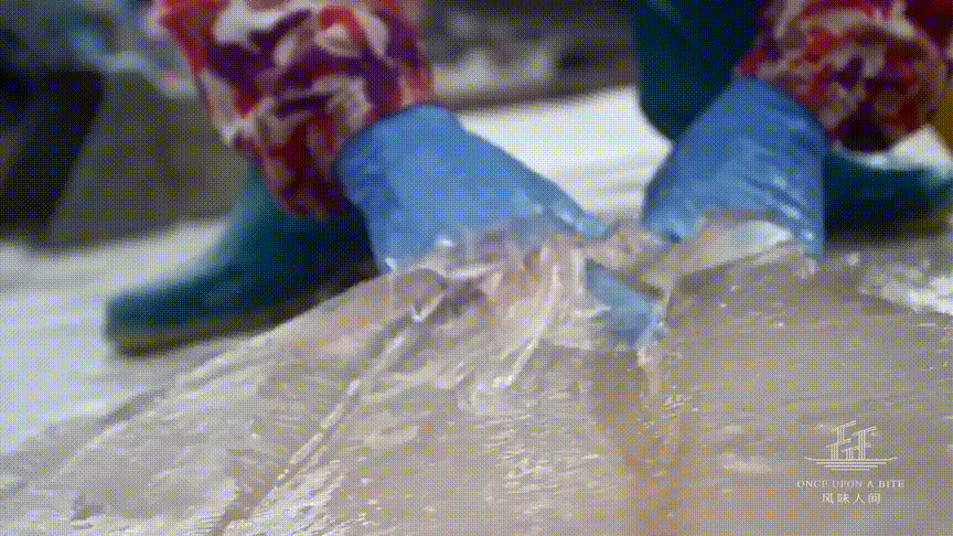 黄山村的渔民们正在对海蜇进行手工分离 图源:《风味中国》