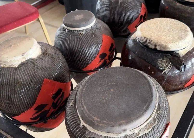 鱼皮鼓,坛口蒙着黑色、白色的鱼皮