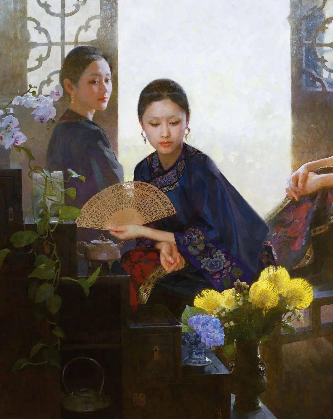 陈衍宁的画,总是透着特有的东方韵味。温婉却不张扬,娴静又极具冲击力。他创作的檀香扇系列,更是被西方评论家盛赞:“真正跨越了文化与历史,呈现了永恒的美感。”