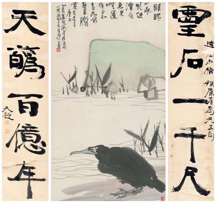 潘天壽(1897—1971 年)精於寫意花鳥和山水。繪畫題材包括鷹、荷、松、四君子、山水、人物等,每作必有奇局。