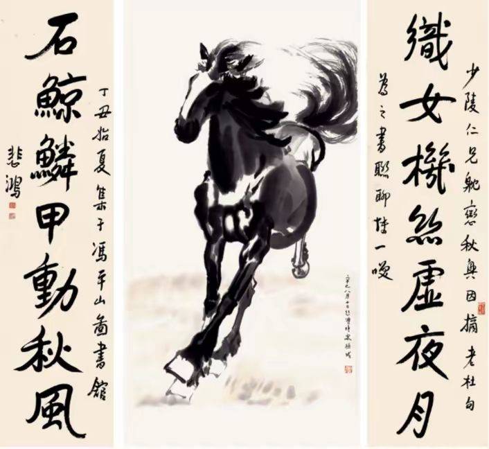 徐悲鴻(1895—1953 年)用筆簡練,墨色明快,且富有生氣,尤以畫馬馳名於世。對中國民族繪畫和歐洲傳統美術深有研究。注重寫實,形神兼備。