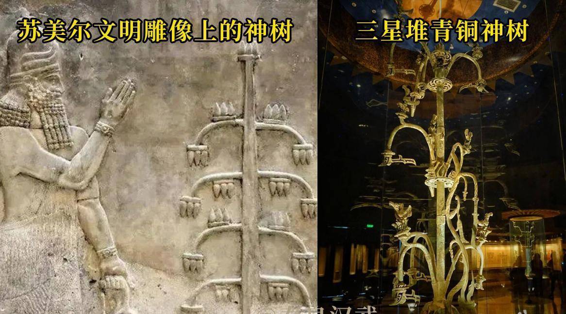 有学者试图将三星堆的考古发现解释为中央王朝文化传播到地方后产生的具有地方特色的自我创造,但这种解释显然也不成立。三星堆所发现的青铜神树在中国其他地区并无类似发掘,反而它与苏美尔文明中的一座雕像上的神树表现出惊人的相似性;同时,三星堆的青铜铸造工艺,特别是铜片补铸和切割工艺,追溯到公元前3000年左右的两河流域;更为神秘的是,三星堆所出土的权杖与古埃及的文化产物极为相似。