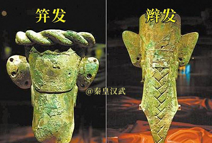 进一步的证据也来自于三星堆本身的青铜人像。这些人像的发型大多为两种,一种是编辫发型,另一种是笄发型,后者通常代表掌管祭祀的神职人员。在这些青铜人像中,有四个戴着黄金面具,其中两个为笄发,另两个为辫发。由于黄金极为稀有,这一现象表明辫发者并非来自神职阶层,而是拥有世俗权力的人物,也就是说,三星堆文化的权力结构显然融合了神权与世俗权力。