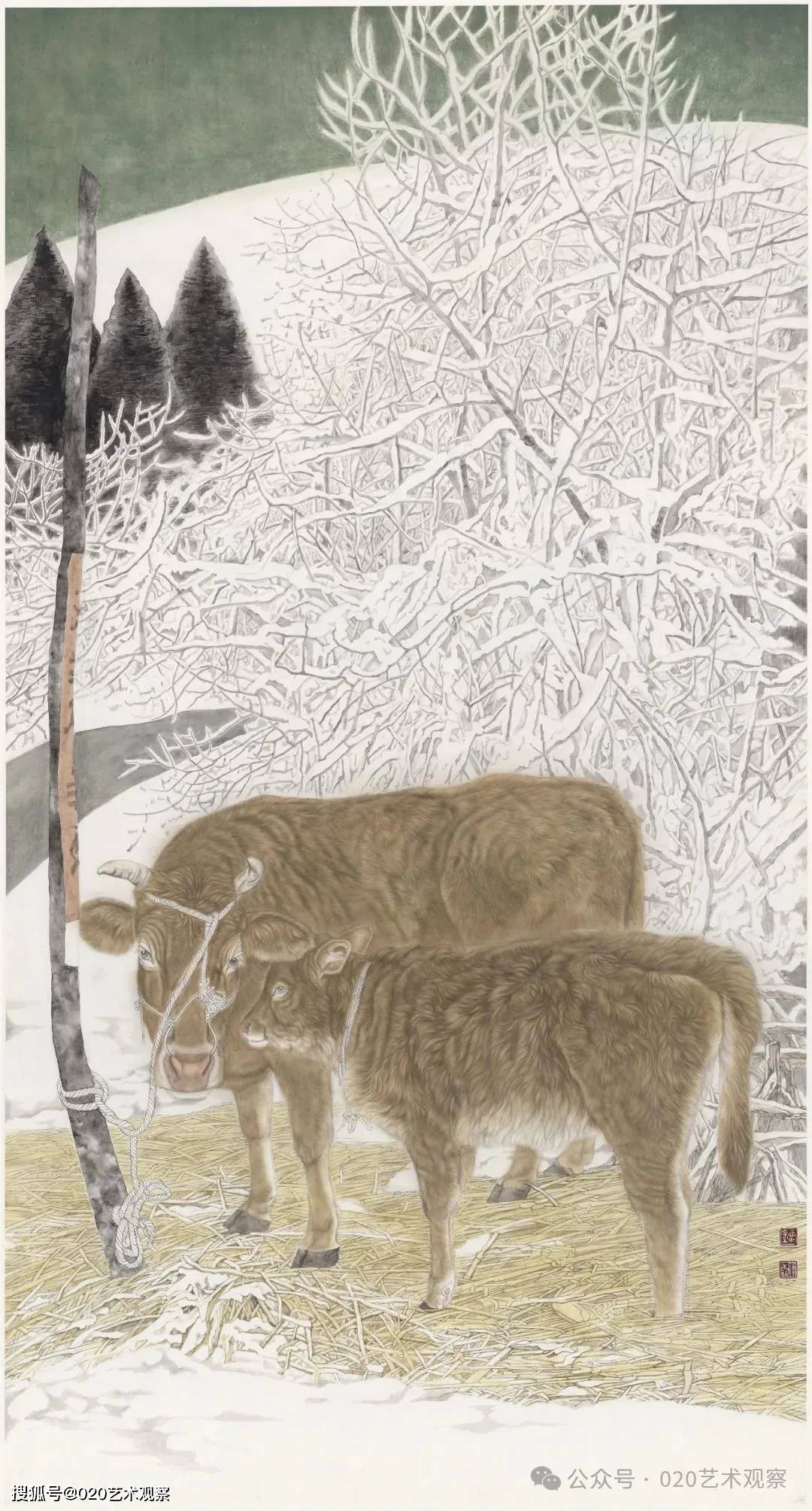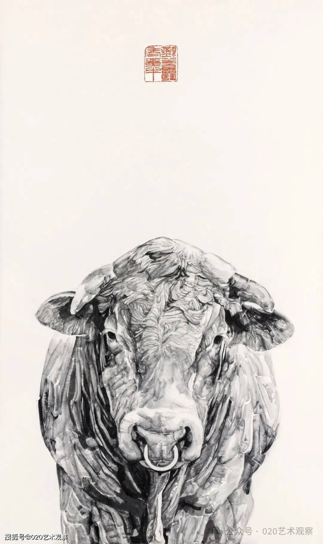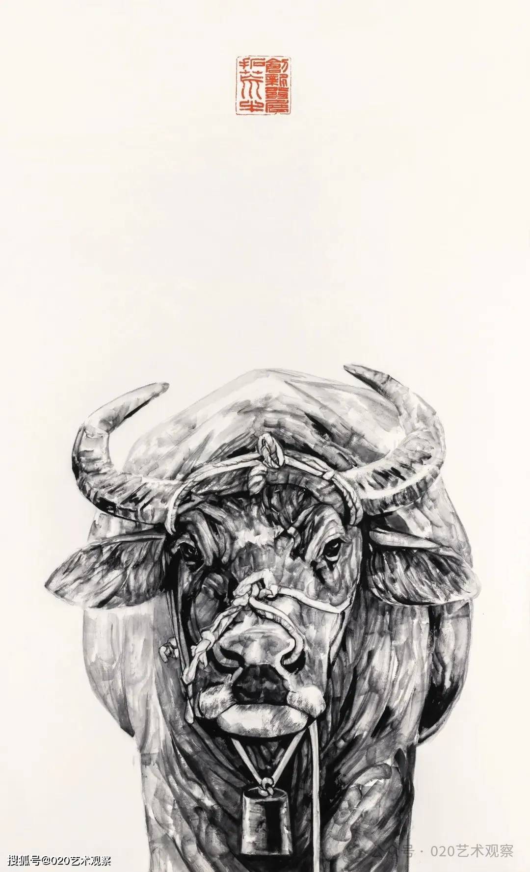 《三牛精神》 180×145cm×3 纸本水墨 2021年