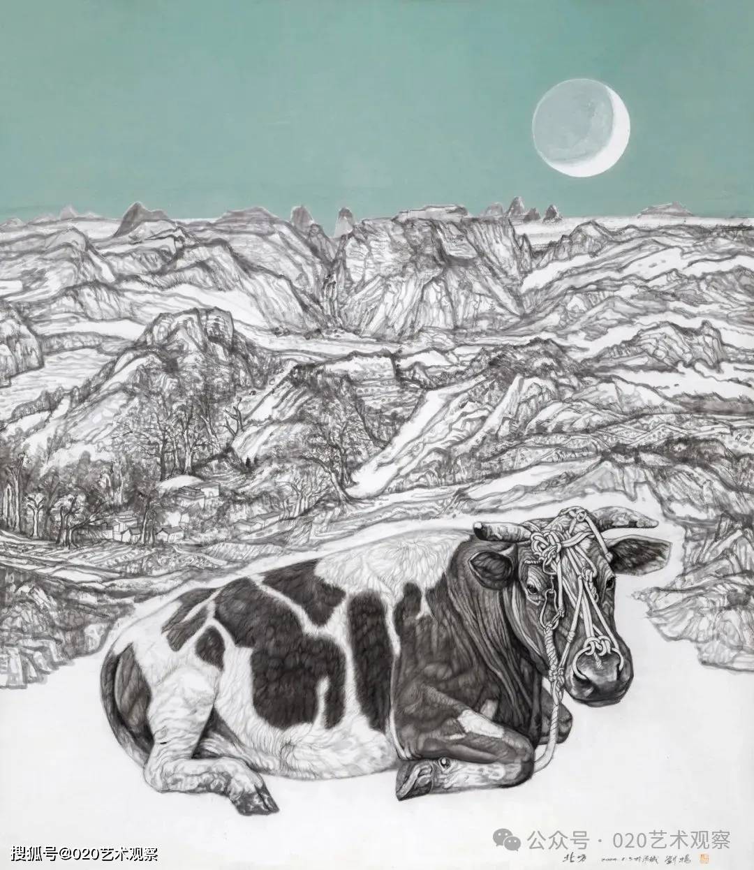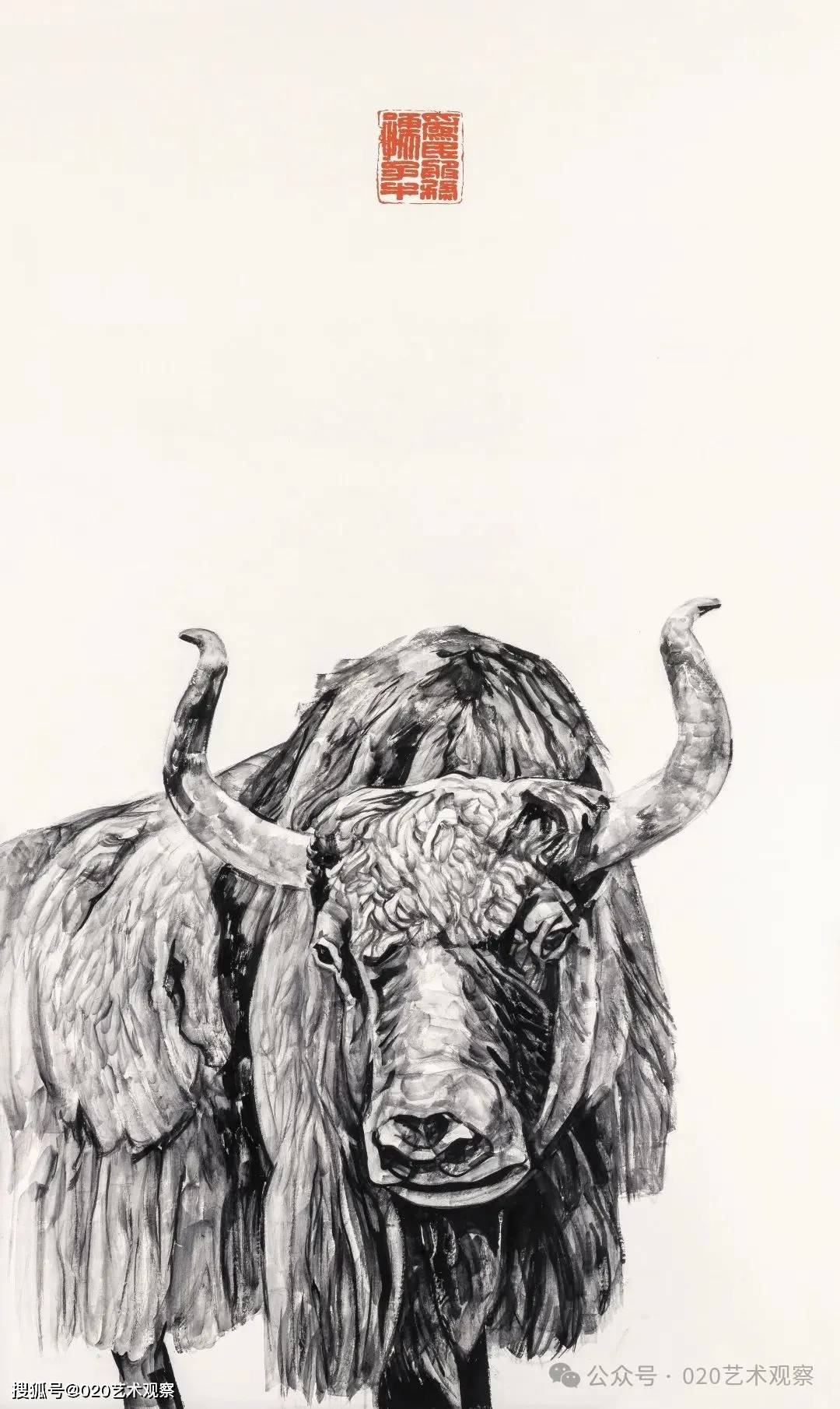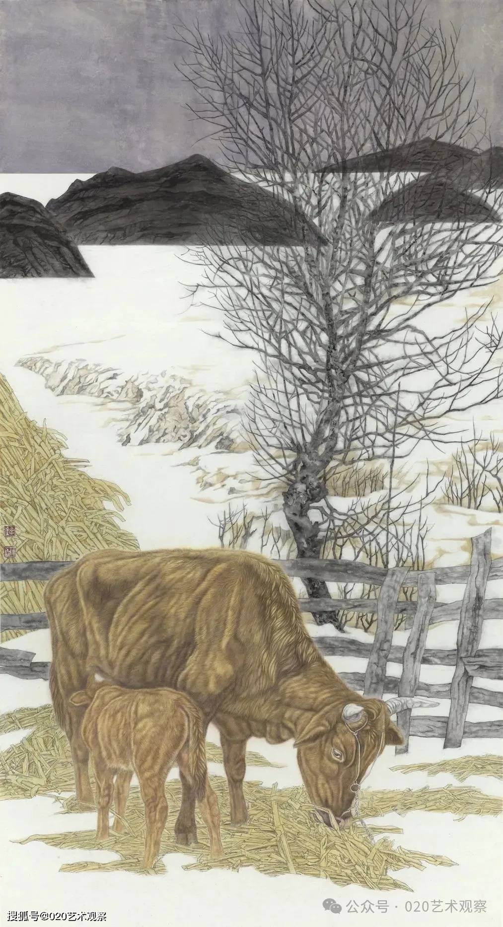 《三牛精神》 180×145cm×3 纸本水墨 2021年