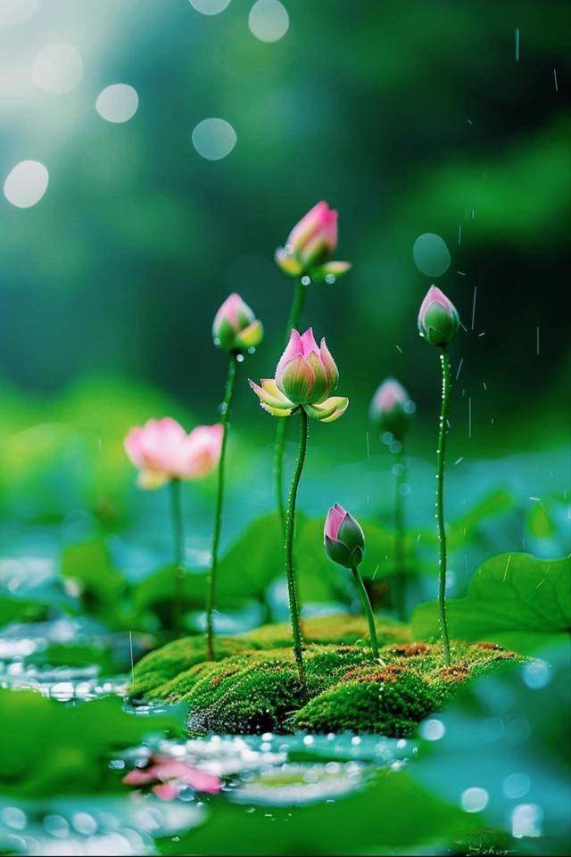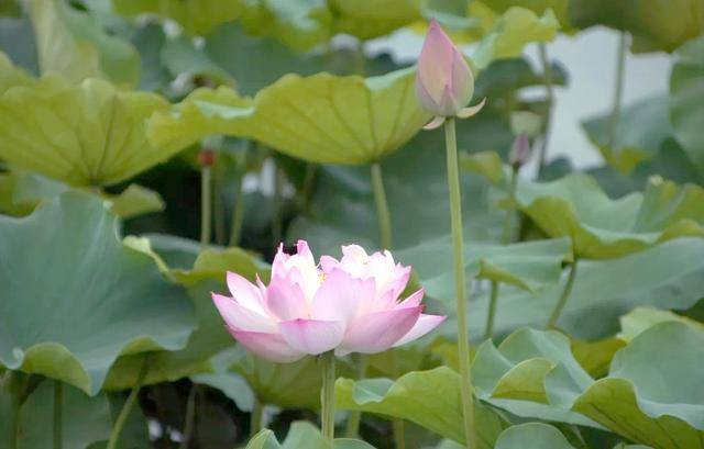 曲折的堤岸弥漫着荷花清幽的香气,圆圆的荷叶重重叠叠的覆盖在池塘上。