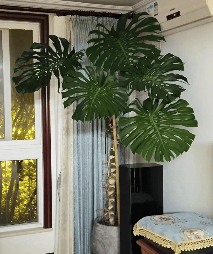 随着龟背竹的生长,可能会出现一些问题,影响它的美观,这就需要我们给它修剪和塑形。要是龟背竹长得太高,头重脚轻,影响整体造型,就可以通过打顶的方法来控制高度。在春季或者秋季生长旺盛期,用剪刀把主枝的顶端剪掉,这样就能去除顶端优势,让养分分散到侧枝上,侧枝就会长得更茂盛,植株也会更丰满。另外,龟背竹生长过程中,可能会因为叶片和枝条的重量出现倒伏或者弯曲。这时候,我们可以用支架来帮忙,选择竹竿、木棍或者金属支架都行,把支架插入盆土中,再用细绳或者园艺铝线把植株的枝条轻轻绑在支架上,注意力度要适中,别勒伤枝条。通过这样的修剪和塑形,龟背竹就能保持美观的株型,养出高级感。