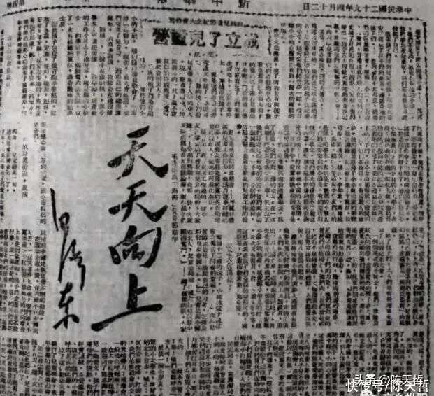 新中国成立以前,毛主席题写的“好好学习”和“天天向上”,一直是分开呈现的题词。后来,《新中华报》刊登了毛主席题词“天天向上”的手迹,这是主席相关题词首次以正式刊载的形式走进报端,成为时代记忆的一部分。