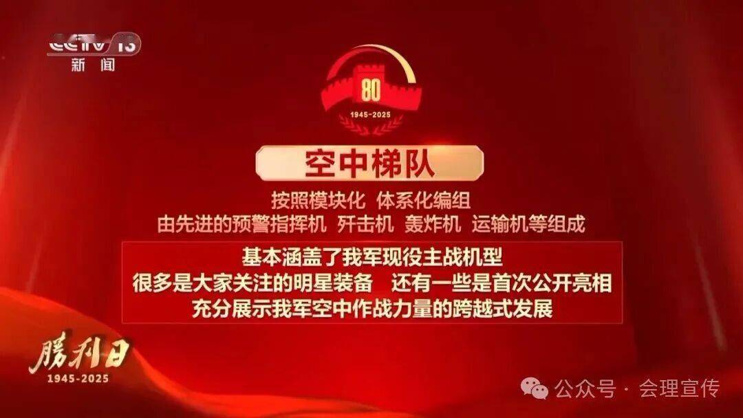 空中梯队,按照模块化、体系化编组,由先进的预警指挥机、歼击机、轰炸机、运输机等组成,基本涵盖了我军现役主战机型,很多是大家关注的明星装备,还有一些是首次公开亮相,充分展示我军空中作战力量的跨越式发展。