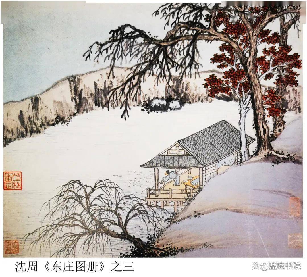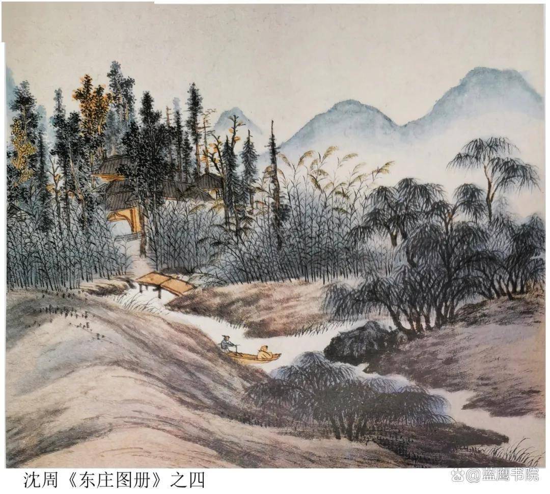 写生间隙与观画的友人闲聊,忽然忆起明代沈周为好友吴宽所作的《东庄图册》。二十一开册页,写尽耕读、渔泛、闲居之景:柳荫独读、亭中对谈、湖上采菱、荷锄归田,笔笔都透着淡泊自适的意趣。