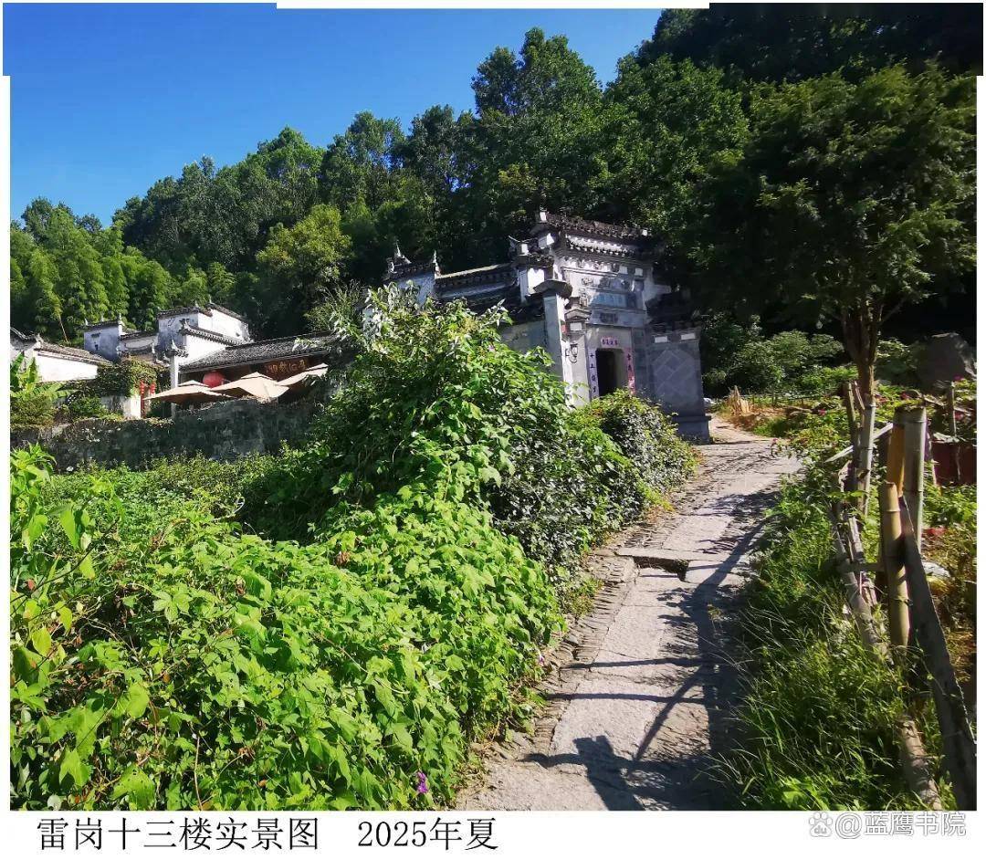 村口菜畦中,夏花正开得热烈,与古建筑相映成趣。我喜欢在此驻足,用笔墨定格这份生机,让老墙的沧桑、绿树的清凉、夏风的柔软,都沉淀在宣纸之上。