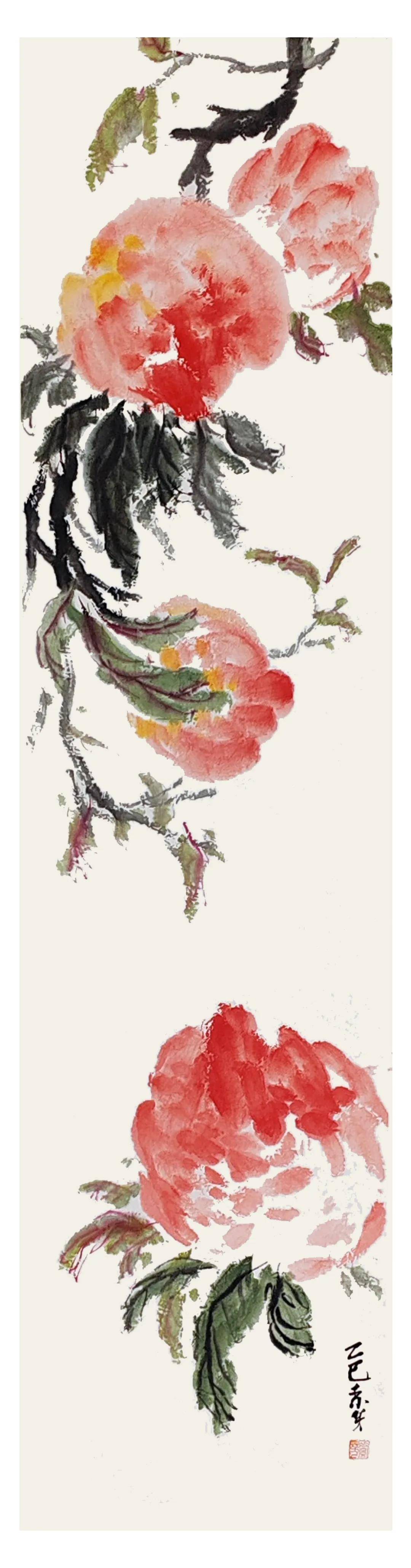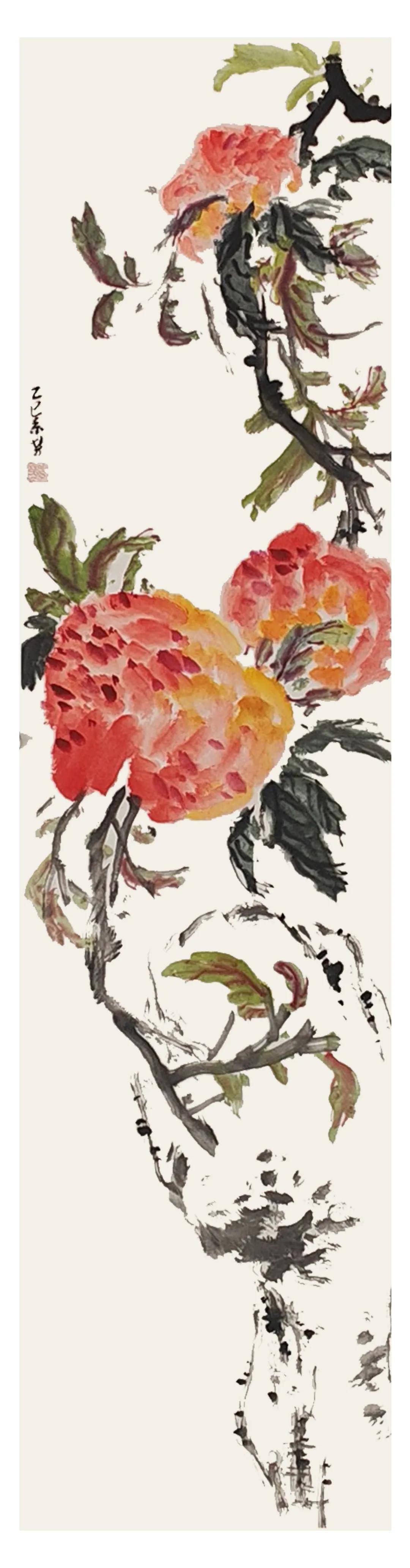 赵素芳老师的《千年大仙桃》是一幅充满生命力的水墨大写意。画中仙桃硕大饱满,色彩鲜艳,枝叶繁茂,展现了自然的生机与活力。画家技艺高超,线条流畅,赋予画作极高的艺术价值。