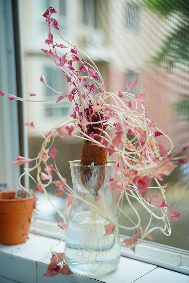 在养花人的心里,红薯不只是用来吃的,还可以当花养,且养好了,比一些买的绿植还要美,养起来也简单,有点清水也能长得郁郁葱葱,十分适合新手养!