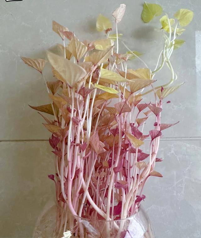 ——避光养就是红色的,还有紫薯的叶子,长出来的,是紫红色的,十分好看~