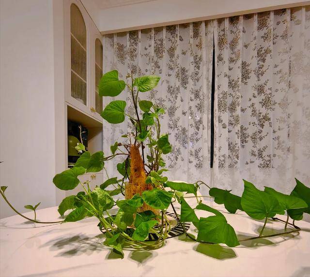 随着红薯逐渐长出繁茂的枝叶,你可以发挥创意,将其装饰成各种造型,如垂吊式、攀爬式等,为家居环境增添一抹生机。