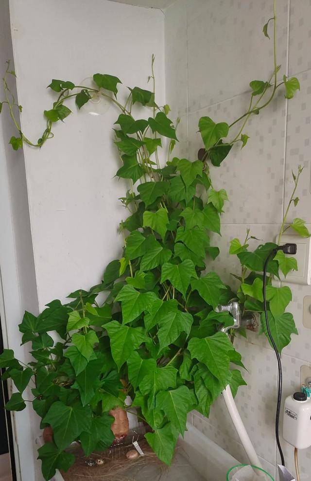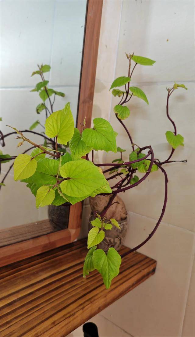 随手拿了家里一颗小地瓜做实验, 没想到它长出来这么惊喜, 叶子观赏性强,生命力超级旺盛, 长势特别喜人。