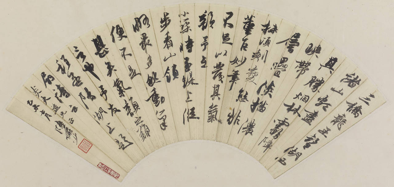 陆俨少《行书 录程孟阳湖上诗》扇面 1955年 18.5cm×49.5cm现藏于陆俨少艺术院