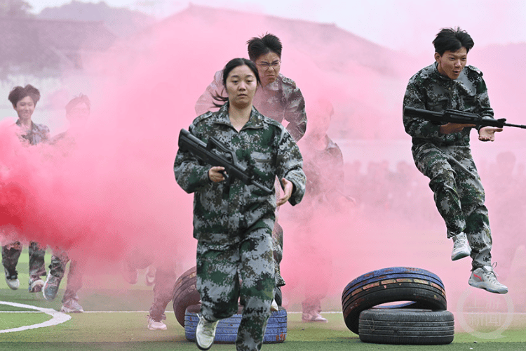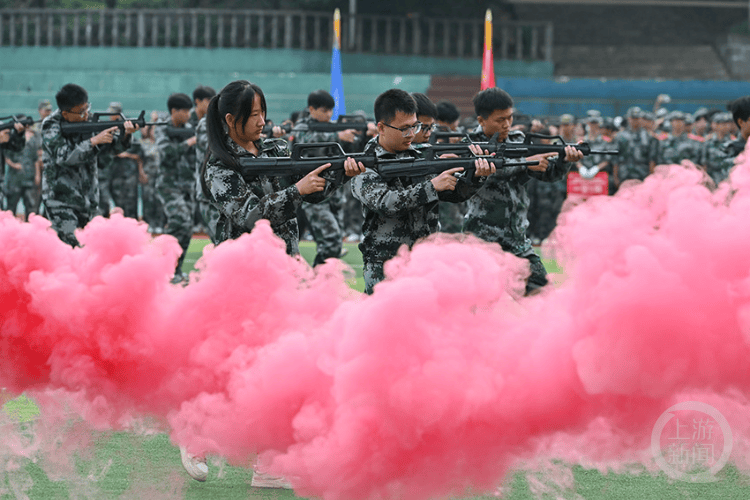 近日,重庆各高校、高中新生陆续开始军训。学生们通过军训提升身体素质,磨砺坚强意志,提升国防意识,以崭新的面貌迎接新学期。