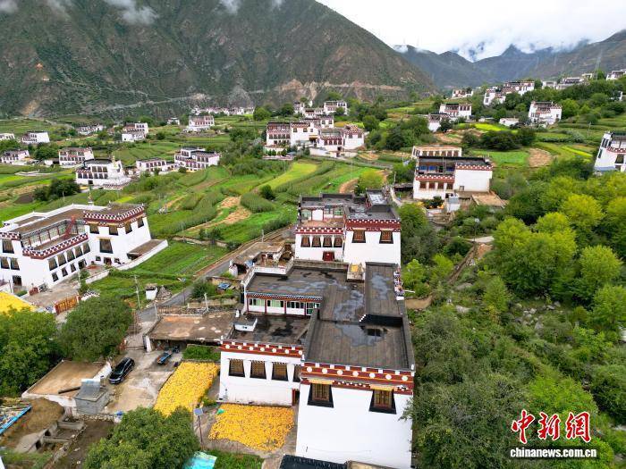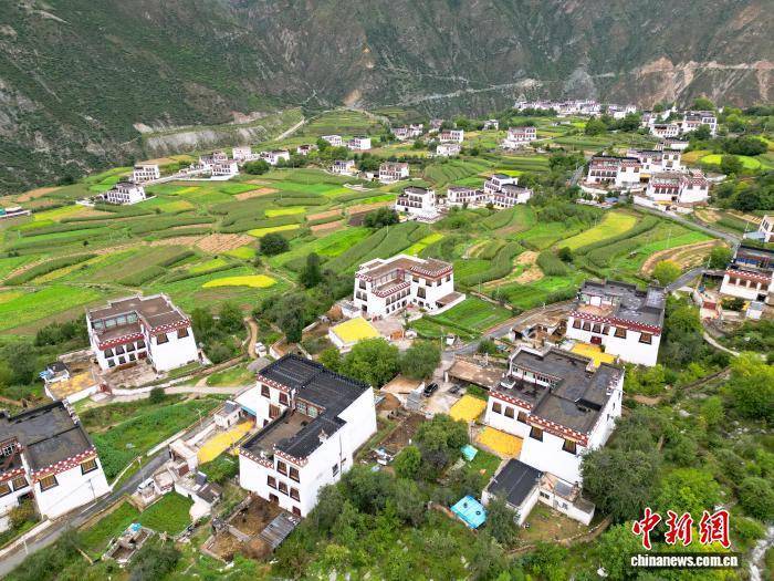 9月12日,四川省甘孜州乡城县青德镇传统村落白藏房初秋如画,一栋栋白色藏式民居错落有致地分布在山间,与农田相映生辉。白藏房属于土木结构,整体为梯形,房屋采用当地特有的阿戈土夯筑而成,外墙通过“白色灌礼节 ”定期浇灌白泥浆维护。当地白藏房构成全国最大夯土建筑群,乡城被称为“中国白藏房文化之乡”。中新社记者 张浪 摄