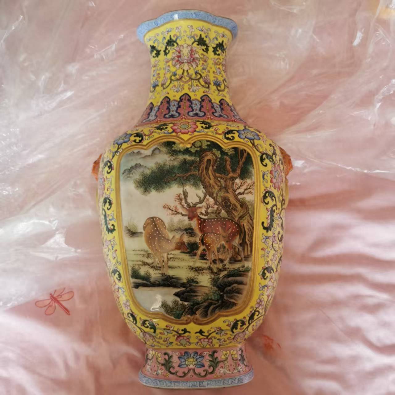 乾隆御制珐琅彩开光松下鹿纹瓶:盛世华彩的艺术巅峰