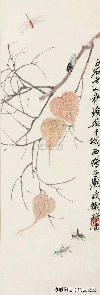 作为白石老人自创并独有的绘画风格与 题材,“贝叶草虫”可谓名副其实的杰出创造和精湛卓绝的艺术表现,改变了唐代以来“评 画以禽鸟为下,而蜂蝶蝉虫又次之”的评画标准,提升了草虫画的品格,成为中国近现代绘 画史上的艺术奇葩。