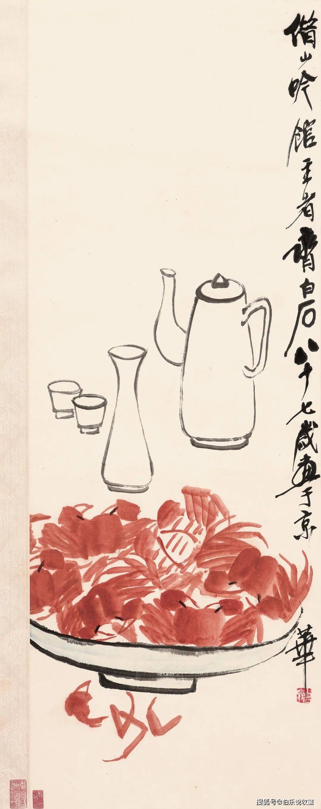 齐白石的草虫,有工、写之分。通常工细者,先画草虫后补景;写意者,先画景后补草虫。而不管是工是写,齐白石都非常注重草虫的体态结构,反映了他极为细致的观察和表现能力。一般能画出虫爪的结构已是不易,但他不仅画出基本的结构,还画出虫爪上的毛,真可谓细致入微,令人叹为观止,表现了极强的绘画功力。