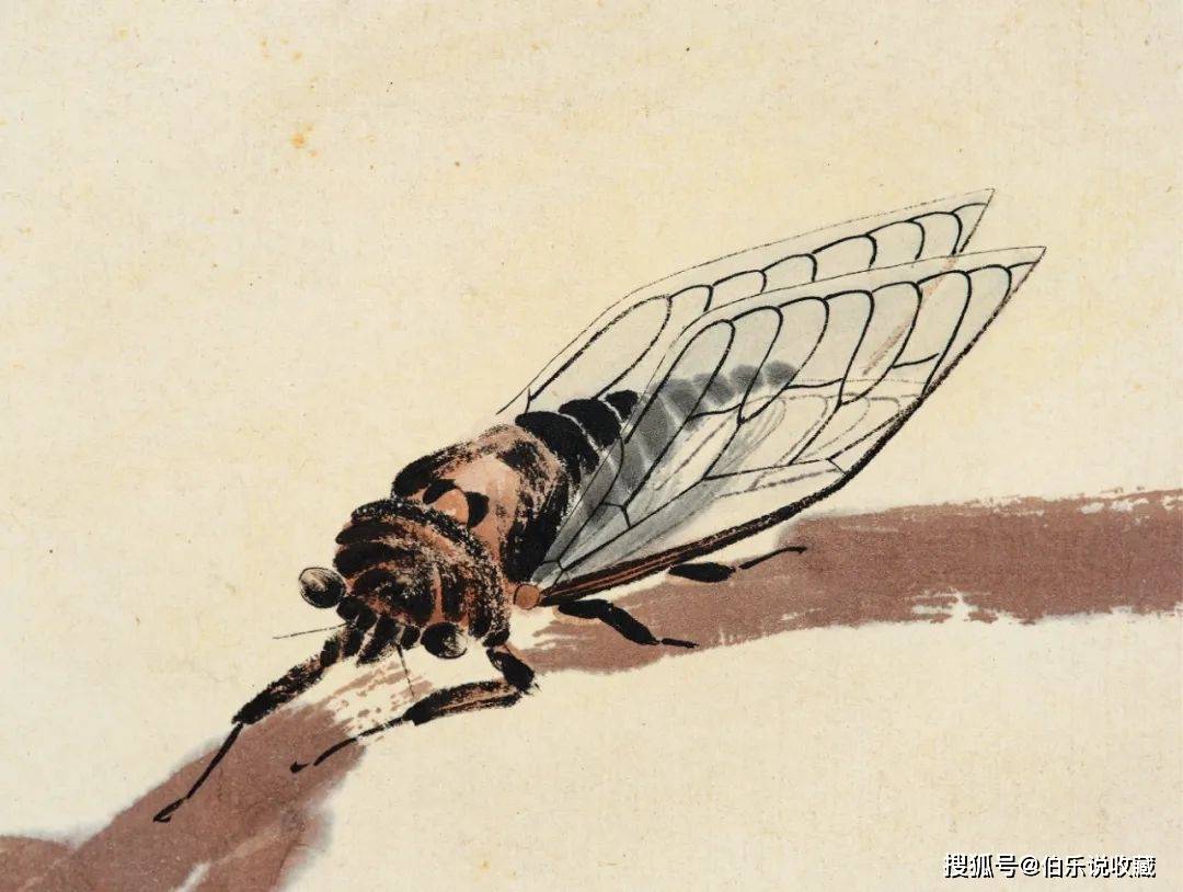 我国历代虽不乏工笔草虫能手,然考其创作范式,传统画家多将草虫置于配景地位,或作点景之用,或为折枝之缀,至齐白石方使草虫升为独立画题,创前无古人之境。其笔下草虫多达二十余种——“目之所及,皆无所不画”。蝉翼纹理、蟋蟀触须皆纤毫毕现,尺寸虽如现实般微小,却常为画眼之所在,这种对草虫题材的深度开掘与范式革新,将工笔草虫创作推向后世难以企及的艺术高度,在中国美术史上具有划时代的典范意义。
