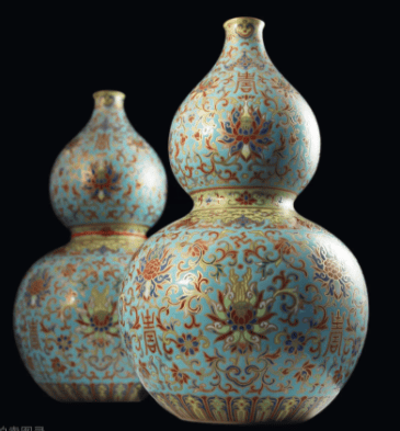嘉庆 粉彩缠枝花卉寿字纹葫芦瓶