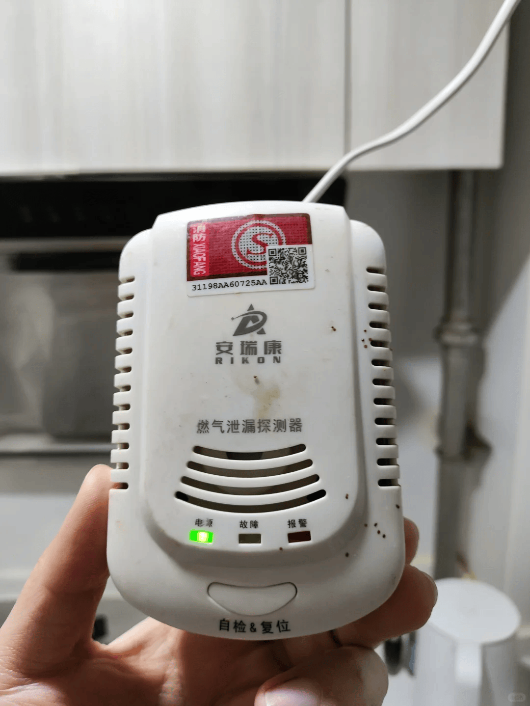 屋里挂个燃气报警器,一漏气就叫得像鸡打鸣。