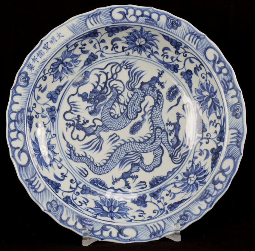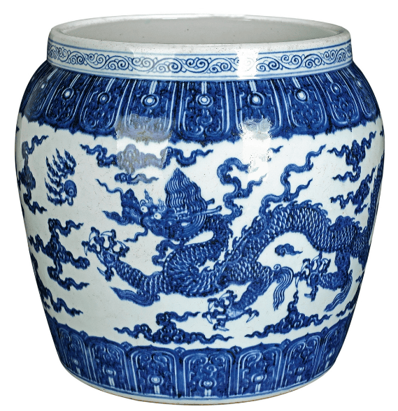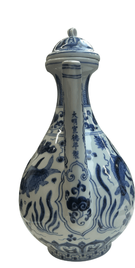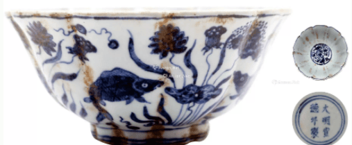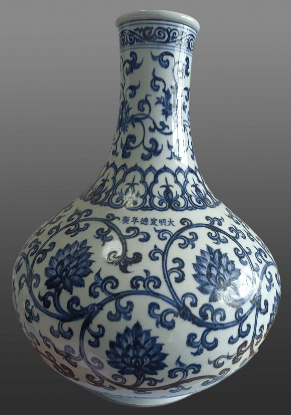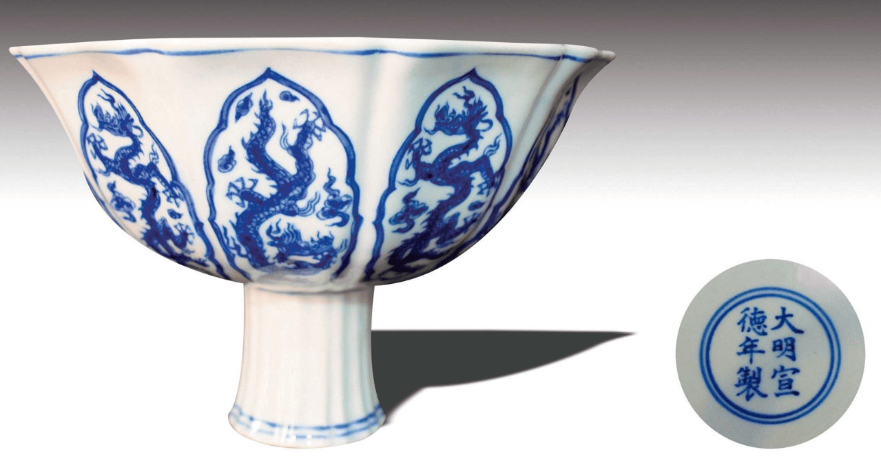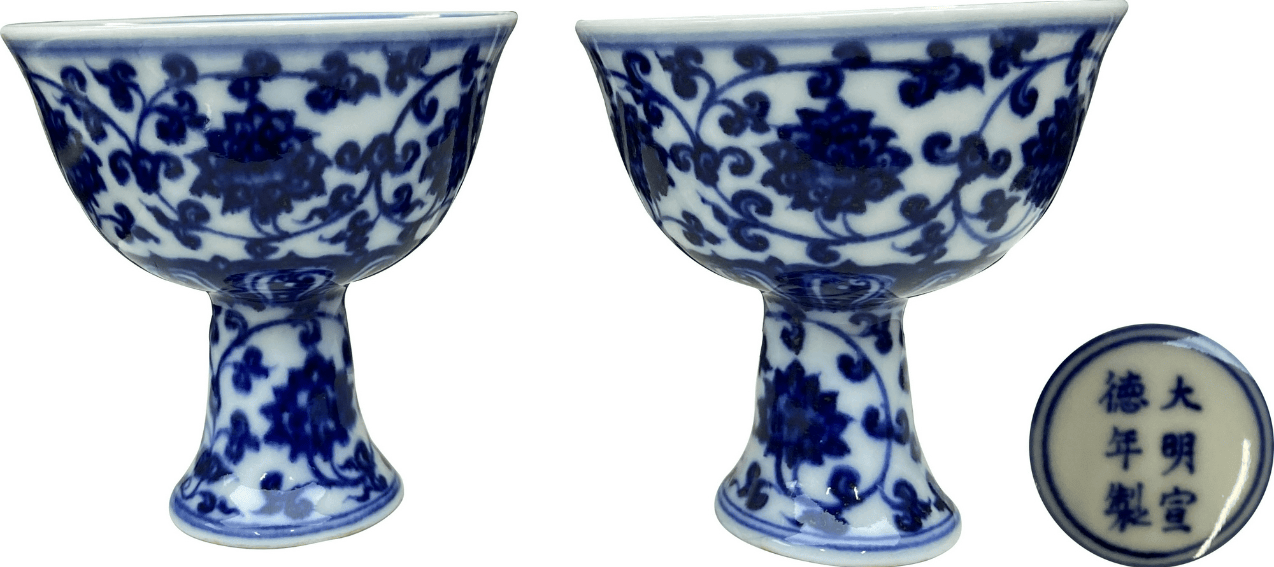 明代 宣德青花缠枝花卉高足杯 (一对)