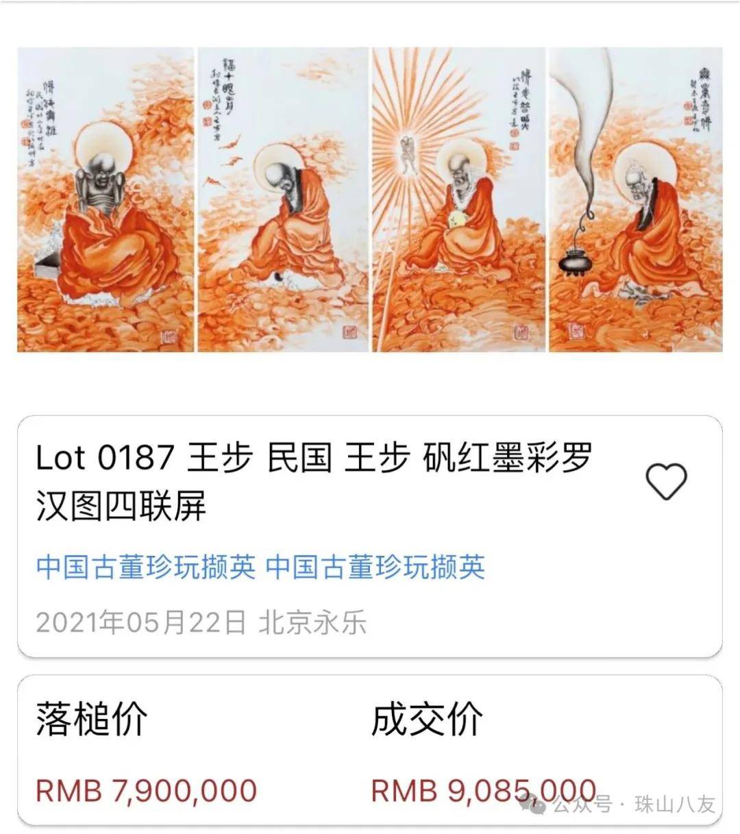 粉彩精品的阶段性行情:在 2023 年的某专场拍卖中,《粉彩罗汉传经图挂盘》以 48 万元成交,成为了粉彩领域的焦点之作。在这个挂盘上,王步运用细腻的笔触,精心描绘出罗汉传经的场景。罗汉们神态各异,有的面容慈祥,娓娓道来;有的若有所思,沉浸在佛法的智慧之中。色彩的运用更是恰到好处,柔和而丰富,将佛教题材的庄严与神圣展现得淋漓尽致,也体现出市场对这一题材的高度接受度。