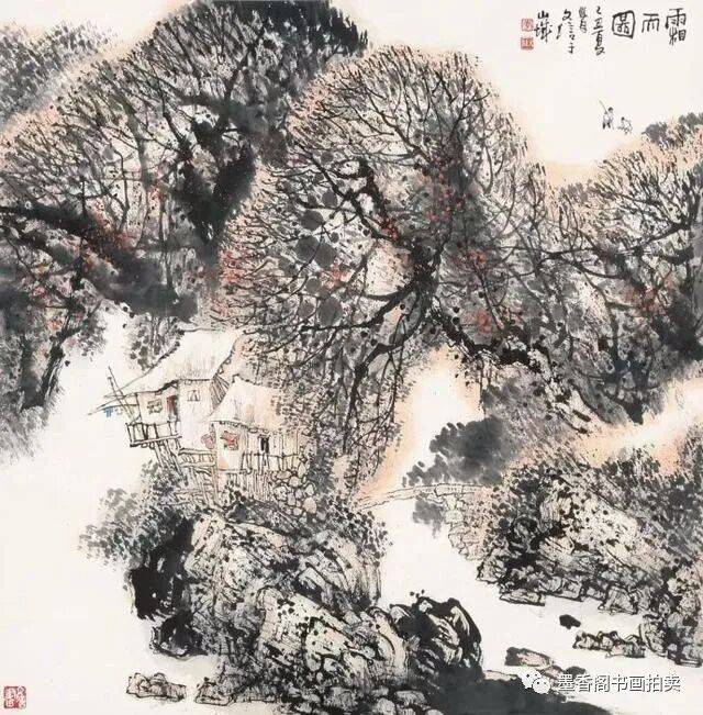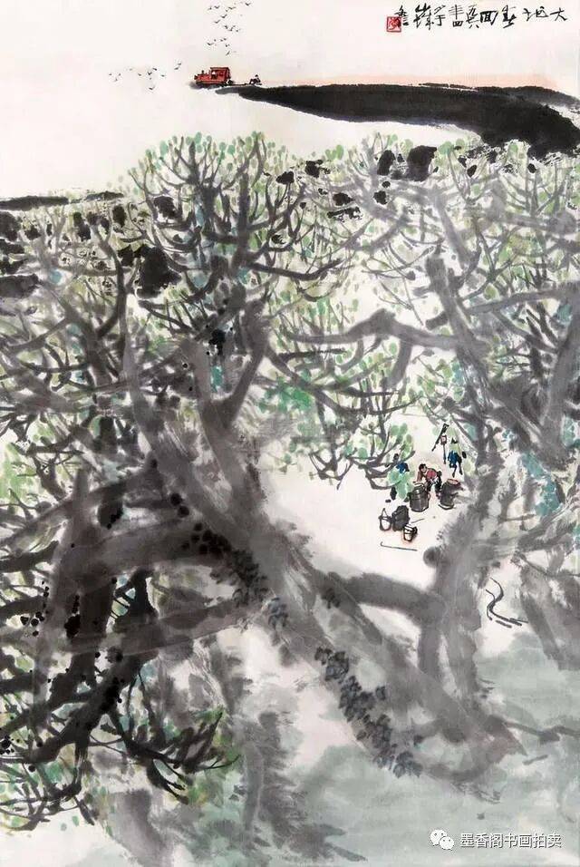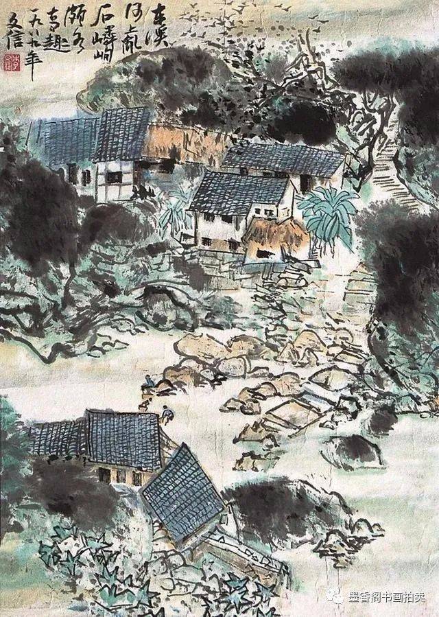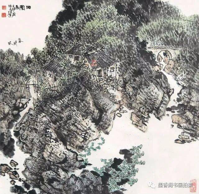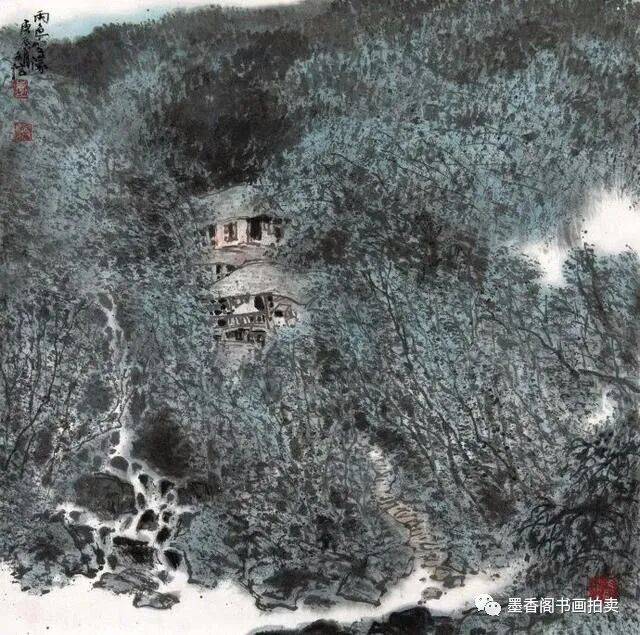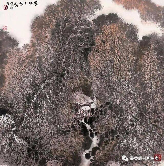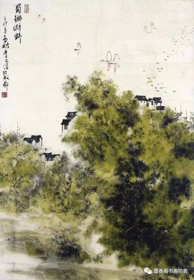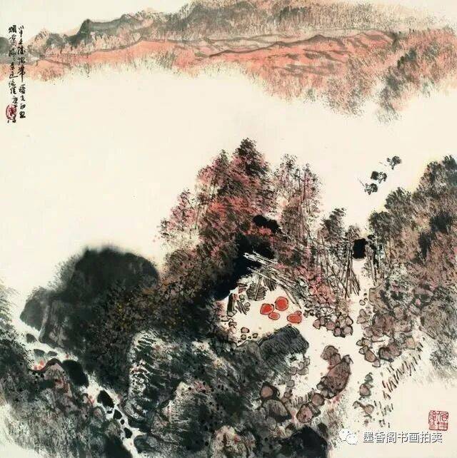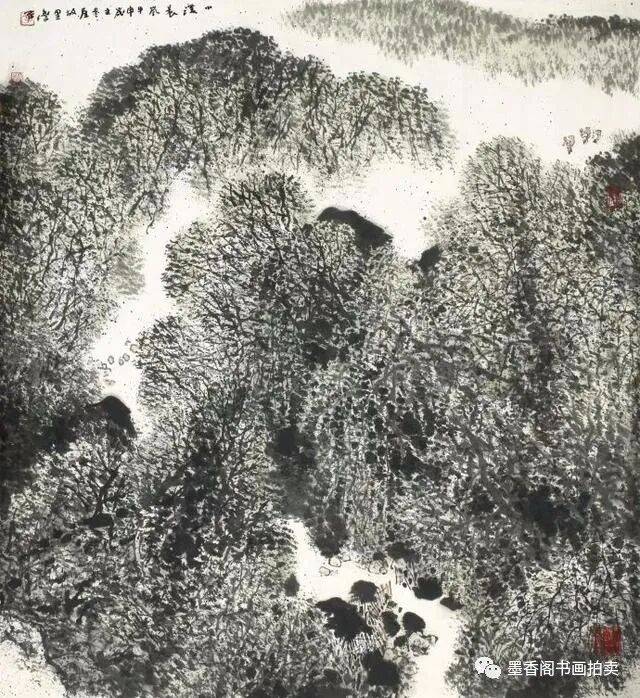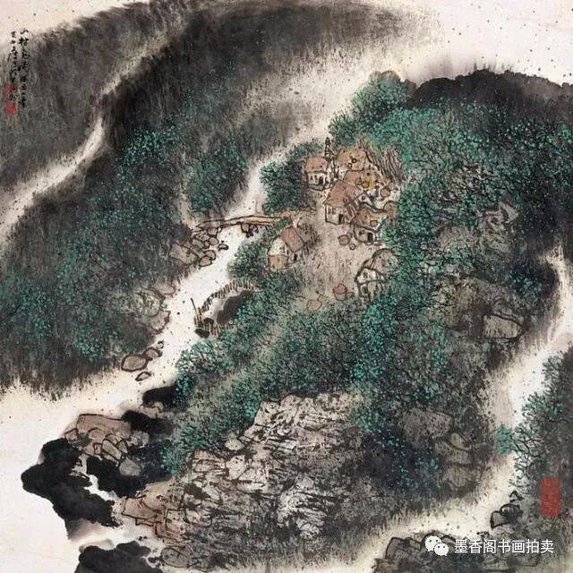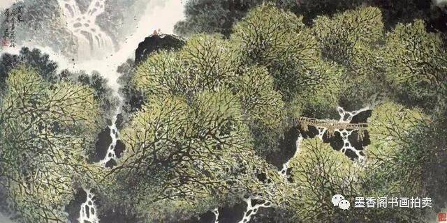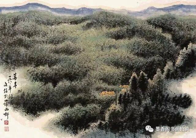 李文信山水画风不尚简远,不追清寂,这让他和传统文人山水画拉开距离;长期以来养成的写生习惯,又让他关注乡村,钟情山林。从宁静致远到热烈亲近,李文信在山水画创作中悄然呈现出自然景观与现实人生的微妙联系。他喜画蜀中丛林,郁郁葱葱,从无衰败零落之象,总是欣欣向荣之景。