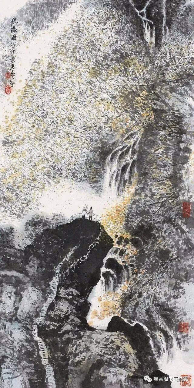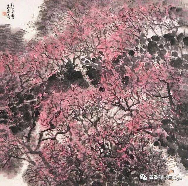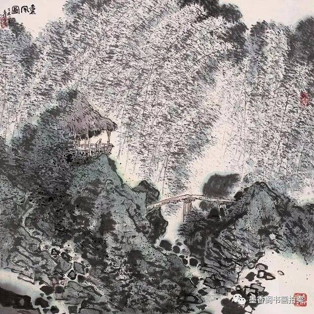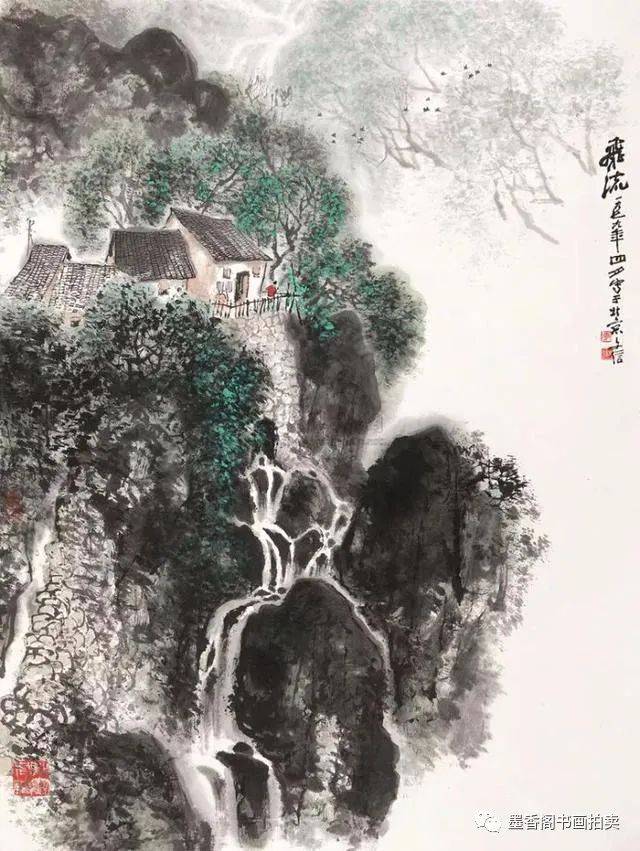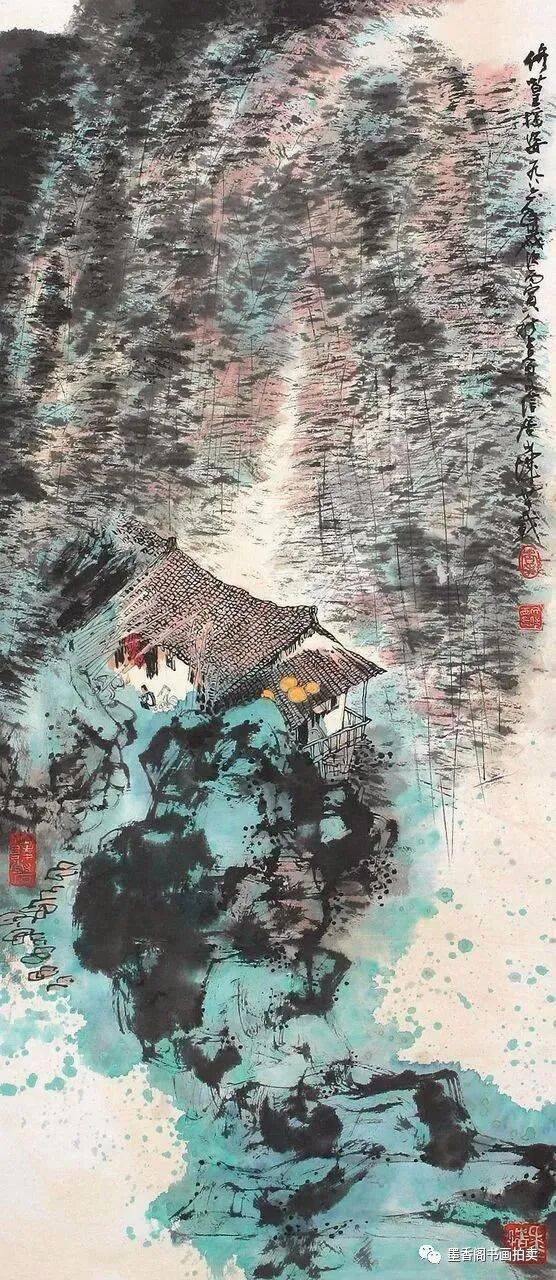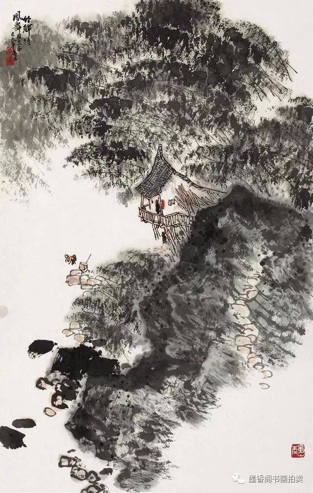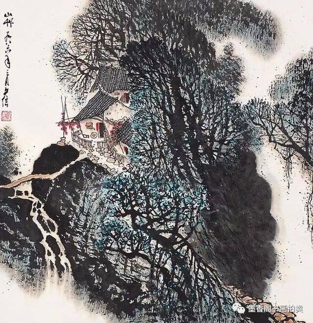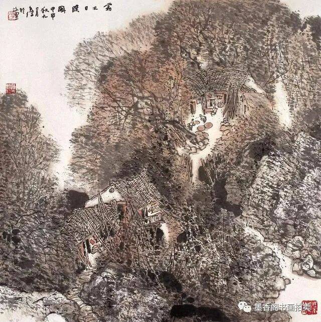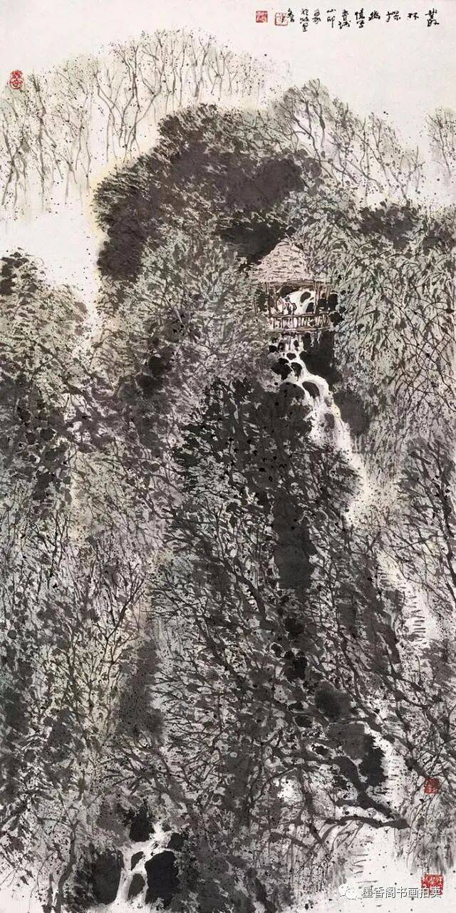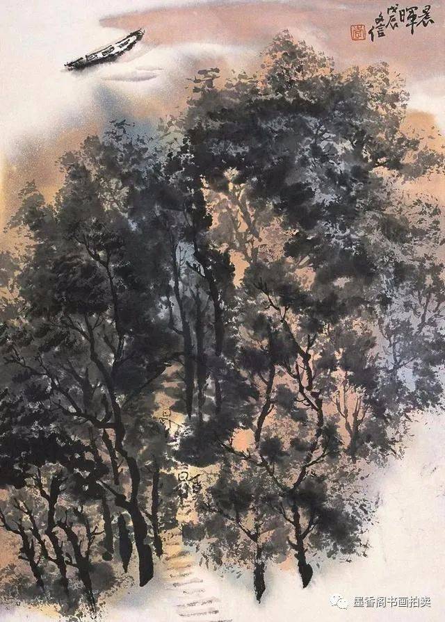 李文信山水画风不尚简远,不追清寂,这让他和传统文人山水画拉开距离;长期以来养成的写生习惯,又让他关注乡村,钟情山林。从宁静致远到热烈亲近,李文信在山水画创作中悄然呈现出自然景观与现实人生的微妙联系。他喜画蜀中丛林,郁郁葱葱,从无衰败零落之象,总是欣欣向荣之景。