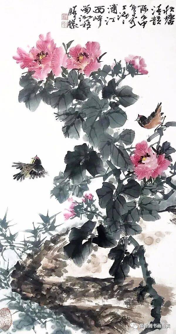 他的花鸟画用墨极富有层次,设色典雅秀丽,无论是花儿还是鸟儿,无论是草儿还是鱼儿,都画得带有一种灵性,让你禁不住与它们进行面对面的交谈。他的作品为人们欢喜也是意料之中的事,在新加坡、法国、美国、尼泊尔以及拉美等国都曾展出过,并多次为国内外报刊刊载与介绍。