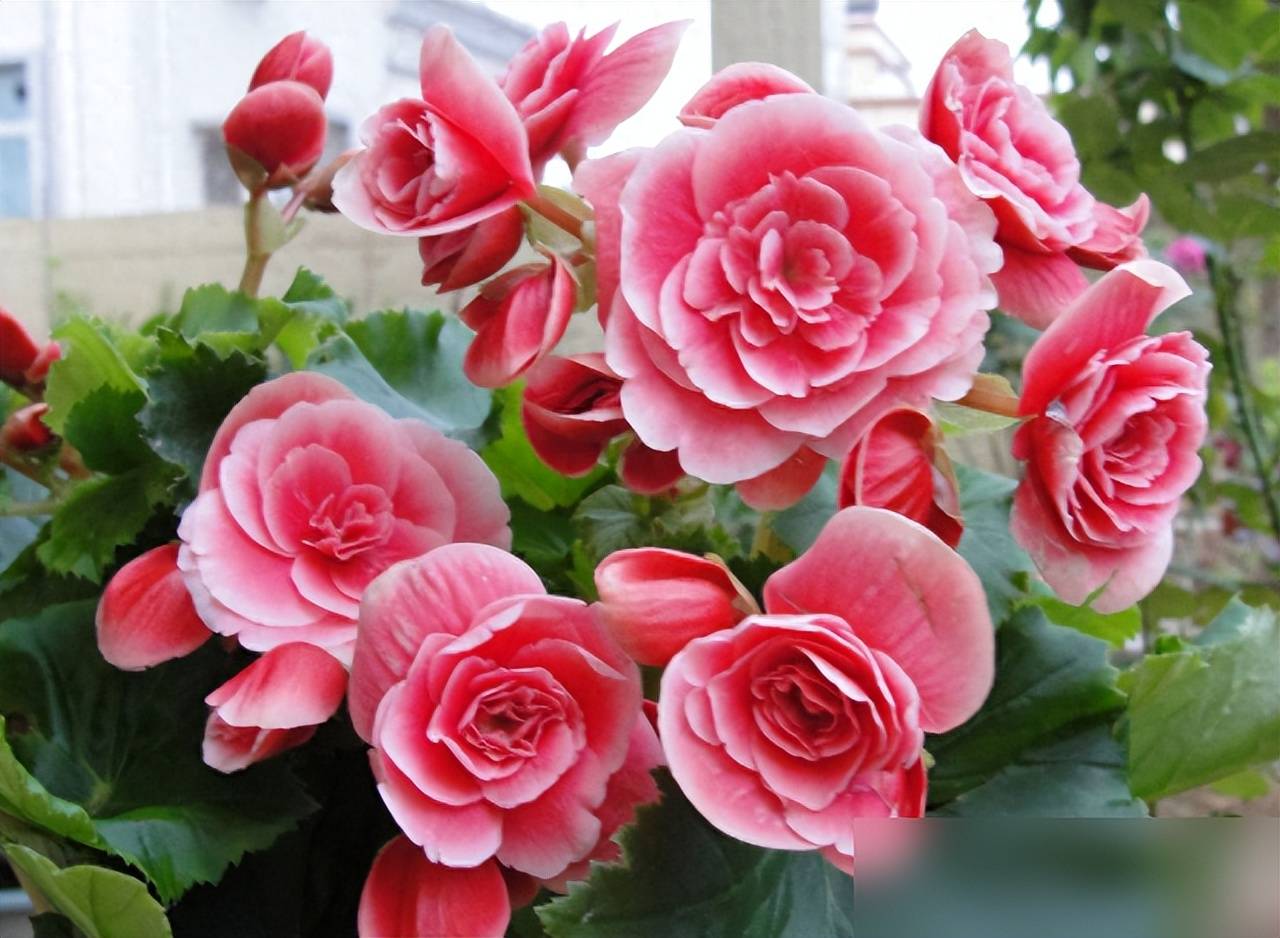 说起来这花还有点“国际背景”,是德国育种家用秋海棠杂交出来的,用人家名字命名的,听着就像给花加了层“专属印记”。我第一次见它是在朋友家的书桌,才20厘米高的小植株,枝桠上挤着四五个花簇,每簇都有七八朵花,简直把“紧凑的浪漫”发挥到了极致——现在年轻人住公寓的多,飘窗就那么点大,放盆绿萝太普通,放盆月季又占地方,丽格海棠刚好卡在“好看又不占地”的完美区间,是不是戳中了很多人的“小户型痛点”?