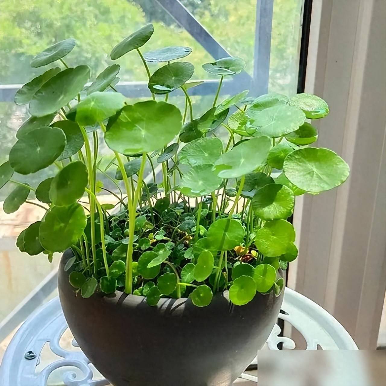 还有铜钱草,我妈养在玄关的玻璃罐里,水培的,每天早上刷牙时浇点自来水,现在叶子铺得跟小绿伞似的,连路过的快递小哥都夸“这花长得真旺”。你们是不是也遇见过“缺水就蔫”的花?铜钱草就是这样——渴了就耷拉着叶子装可怜,浇点水立马支棱起来,跟“给点阳光就灿烂”的小朋友似的,超有灵气。