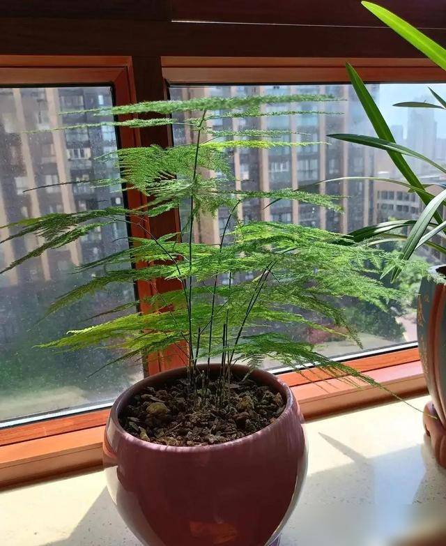 对了,文竹别放强光下晒,不然叶子会变黄,我以前犯过这错,后来放散光处,现在叶子绿得跟翡翠似的。