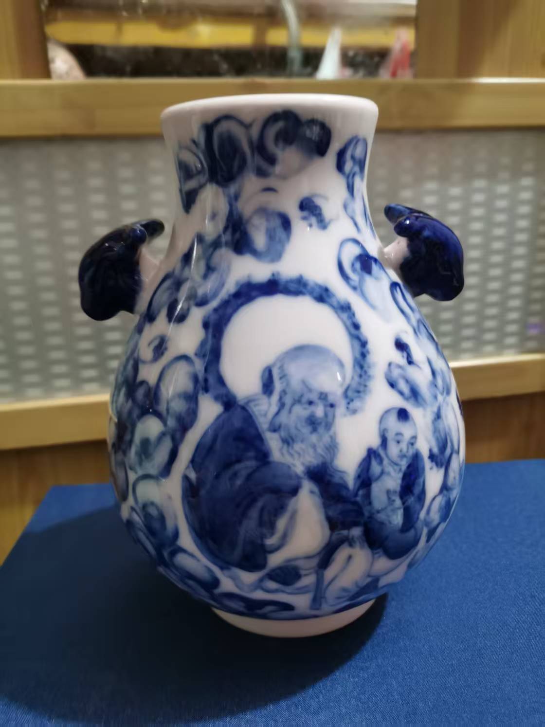 王步款青花人物鹿头尊:瓷韵风华,艺海明珠