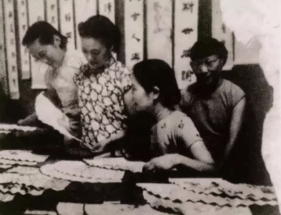 另有一张是她当年在中国女子书画会,与冯文凤、顾飞、陈小翠在选择展品时,被记者偷偷所拍摄的四人合影照。