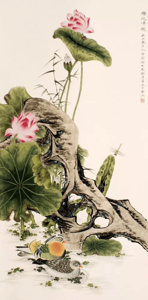 早年从明末清初陈洪绶、恽寿平的工笔和没骨花鸟入手,后上溯师宗宋人工笔画法,所作工笔和没骨花鸟精微典丽、静逸古雅、清新高致,充满生机。
