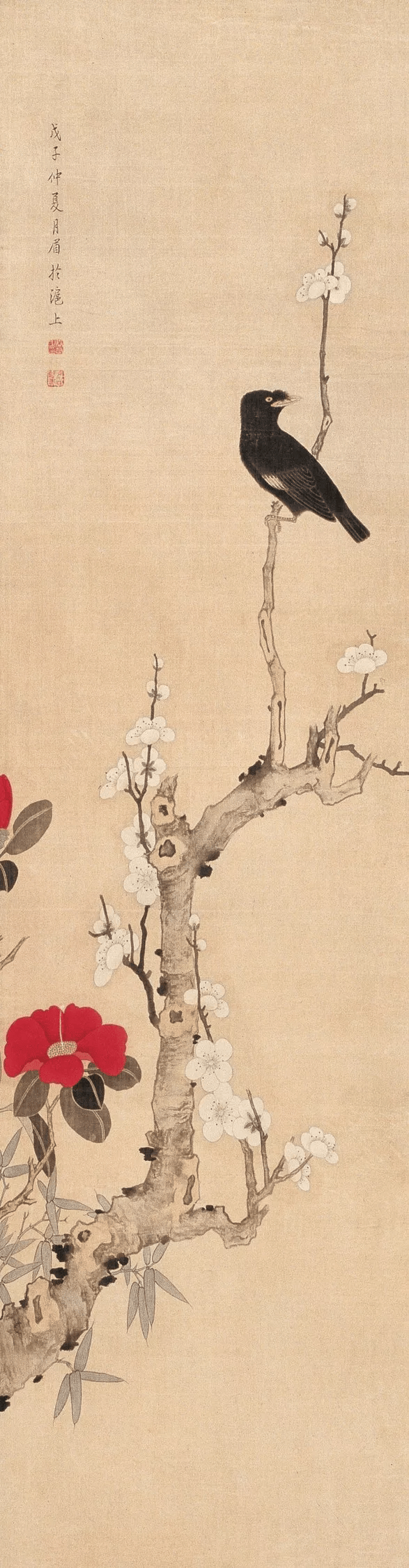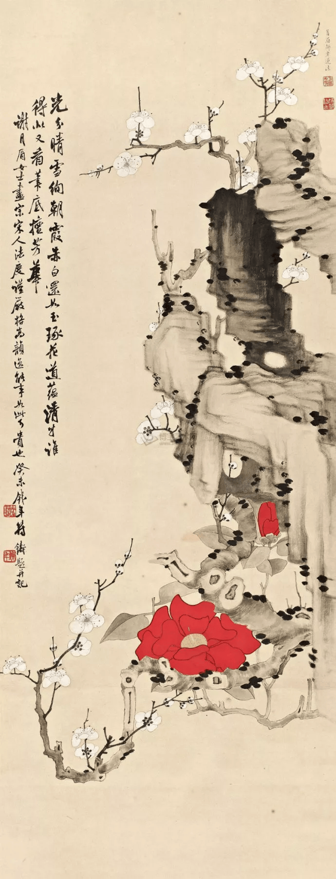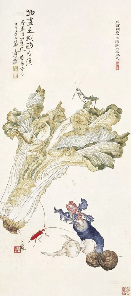 从她现在流传不多的此类作品来看,笔墨风格似较为浓艳和带有喜庆、吉祥色彩,大幅立轴和四、六件条屏居多。